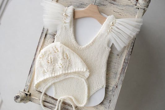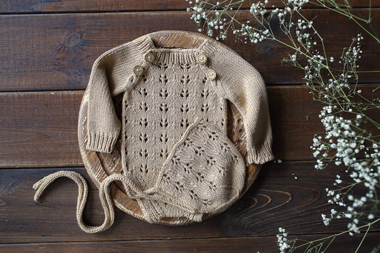 Knitted romper and bonnet,Newborn Photography Prop Set,Newborn photography outfit,Newborn girl photoshoot outfit,Pregnancy gift
