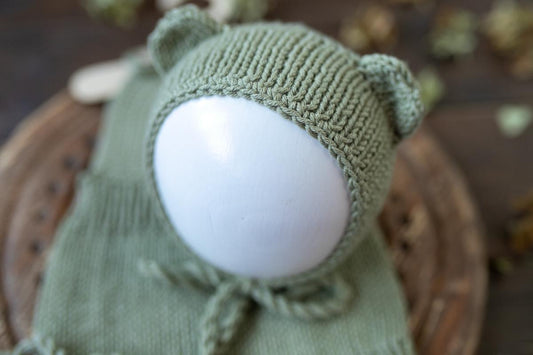 Knitted romper and bonnet,Newborn Photography Prop Set,Newborn photography outfit,Newborn girl photoshoot outfit,Newborn Teddy Bear Outfit