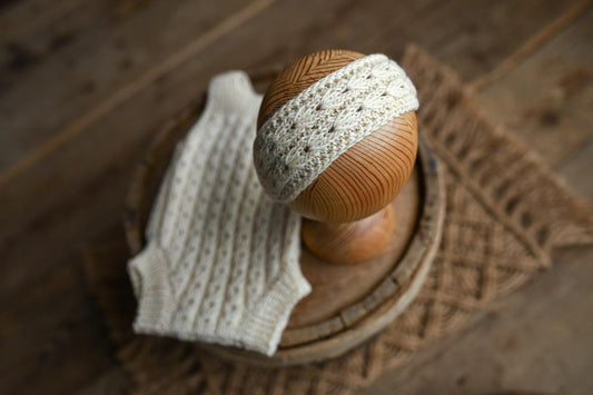Knitted romper and Headband Set,Newborn Photography Prop Set,Newborn photography outfit,Newborn girl photoshoot outfit,Pregnancy gift