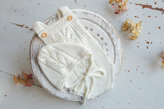 Knitted romper & bonnet,Newborn Photography Prop Set,Newborn photography outfit,Newborn girl photoshoot outfit,Pregnancy gift,Newborn props