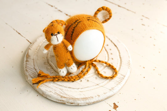 Knitted Romper Tiger cub,bonnet and toy,Newborn Photography Prop Set,Newborn photography outfit,Newborn photoshoot outfit,Newborn Outfit