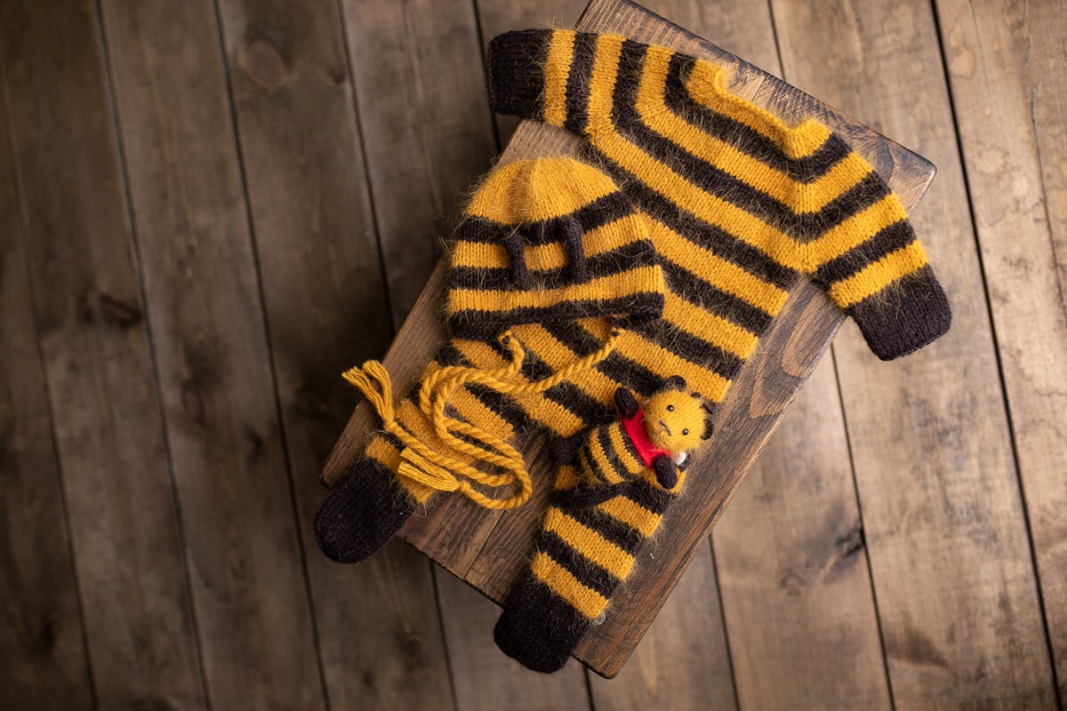 Welcome to our unique store, where every moment becomes unforgettable thanks to our knitted Bee sets for newborn photoshoots.