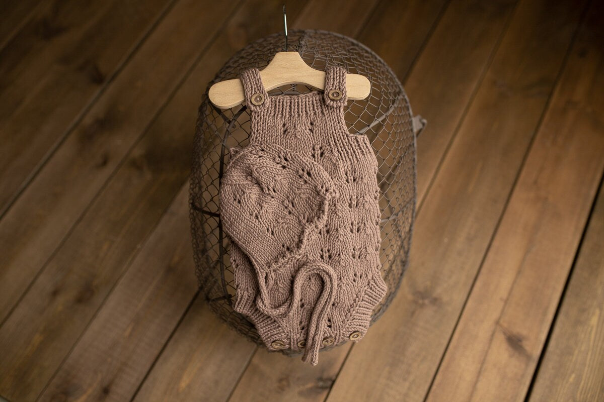 Knitted romper and bonnet,Newborn Photography Prop Set,Newborn photography outfit,Newborn girl photoshoot outfit,Pregnancy gift