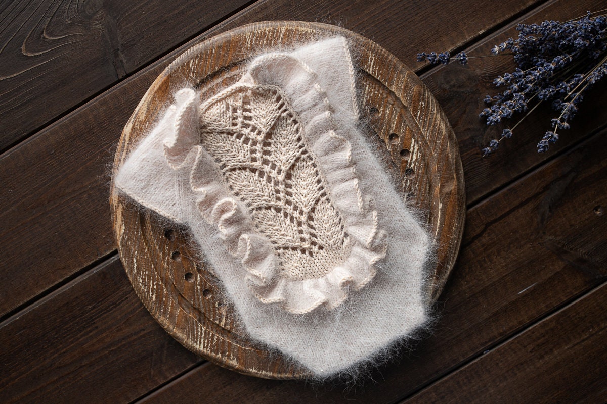 Knitted romper and bonnet,Newborn Photography Prop Set,Newborn photography outfit,Newborn girl photoshoot outfit,Pregnancy gift