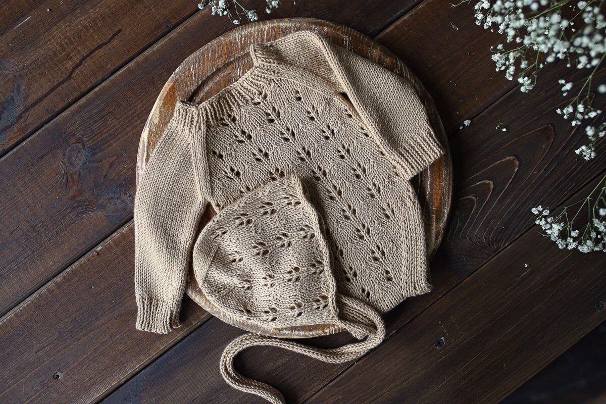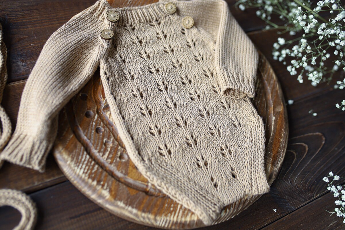 👶 Our knitted outfits and accessories are created with love and care to make your baby look incredible during photoshoots. Each element of our knitted set, from cute rompers to cozy bonnets, is handmade from merino wool, ensuring maximum comfort and warmth.