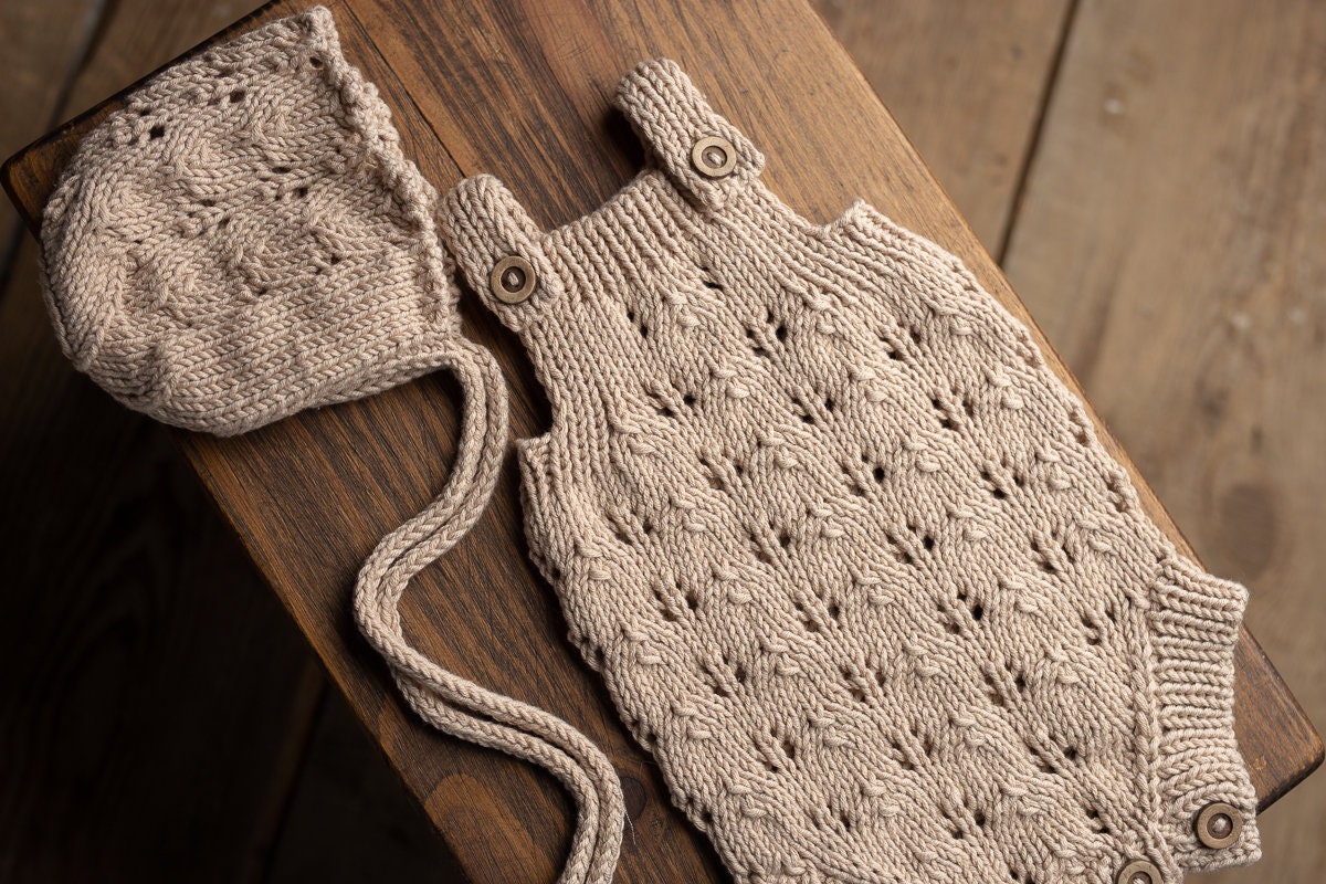 Knitted romper & bonnet,Newborn Photography Prop Set,Newborn photography outfit,Newborn girl photoshoot outfit,Pregnancy gift,Newborn props