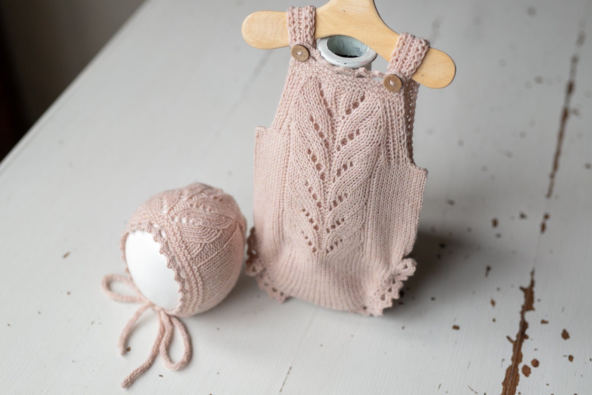 Knitted romper & bonnet,Newborn Photography Prop Set,Newborn photography outfit,Newborn girl photoshoot outfit,Pregnancy gift,Newborn props