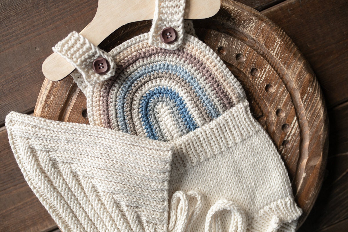Our knitted baby rompers are the perfect choice for creating gentle and stylish looks for your little one. They are made from 100% cotton for maximum comfort and safety for your child. Knitted outfits for newborns are not only beautiful, but also keep warm, which is especially important in the first months of a baby's life.