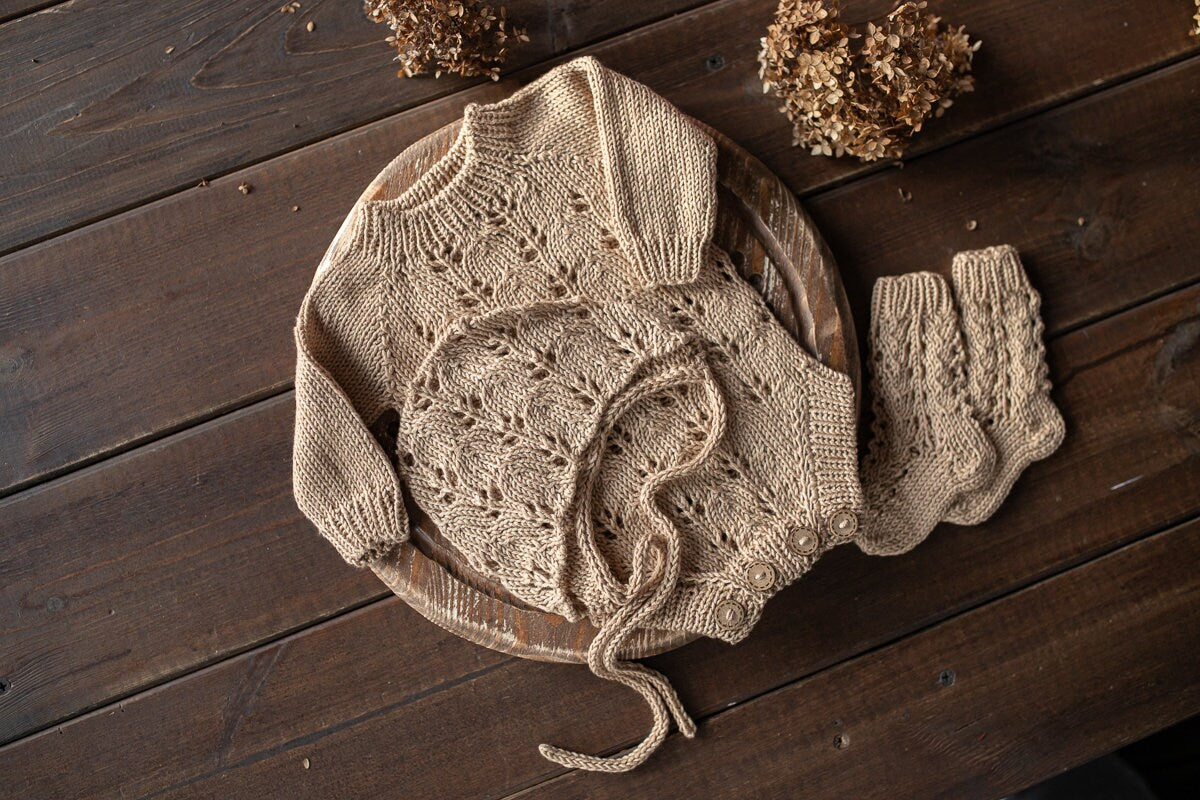Newborn Knit romper,Newborn Knited set,Newborn Hat,Newborn outfit,Newborn cap,Newborn photography,Pregnancy gift,Knitted newborn photo props