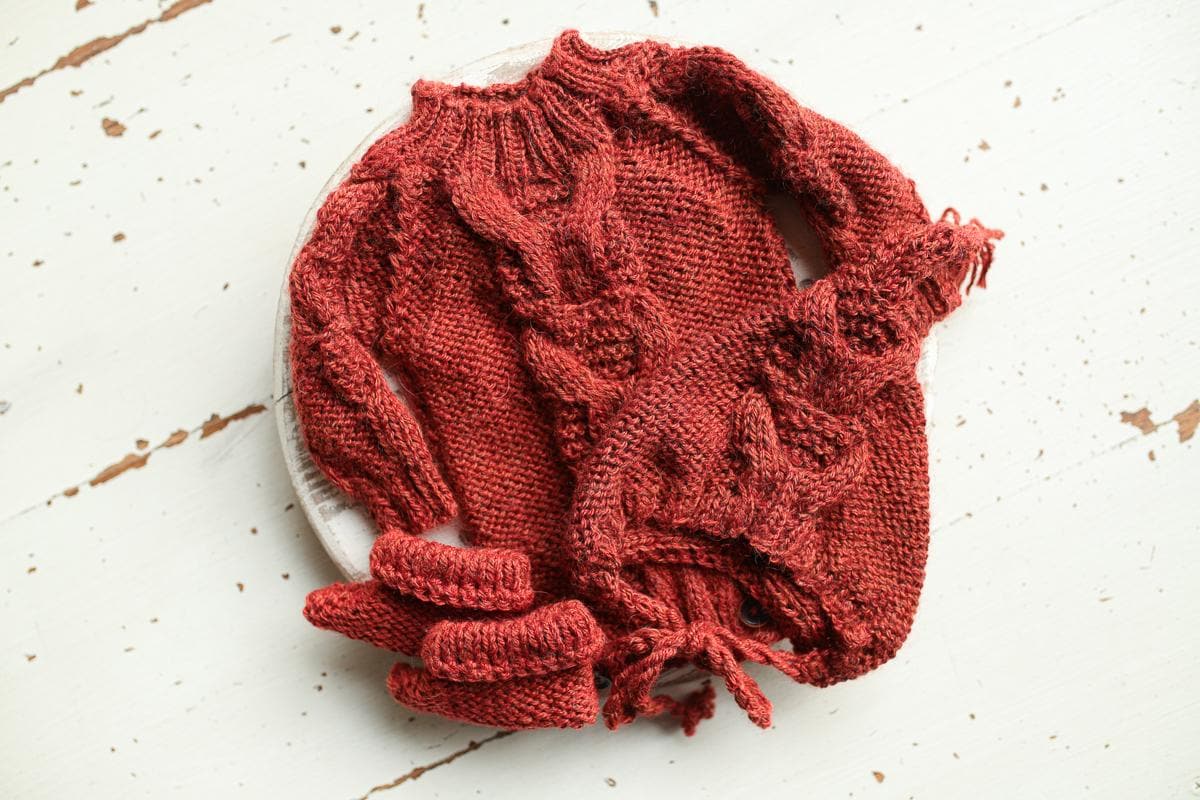 👶 Our knitted outfits and accessories are crafted with love and care to ensure your little one feels cozy and comfortable during photoshoots. Every piece in this knitted set is made from organic cotton, providing incredible softness.
