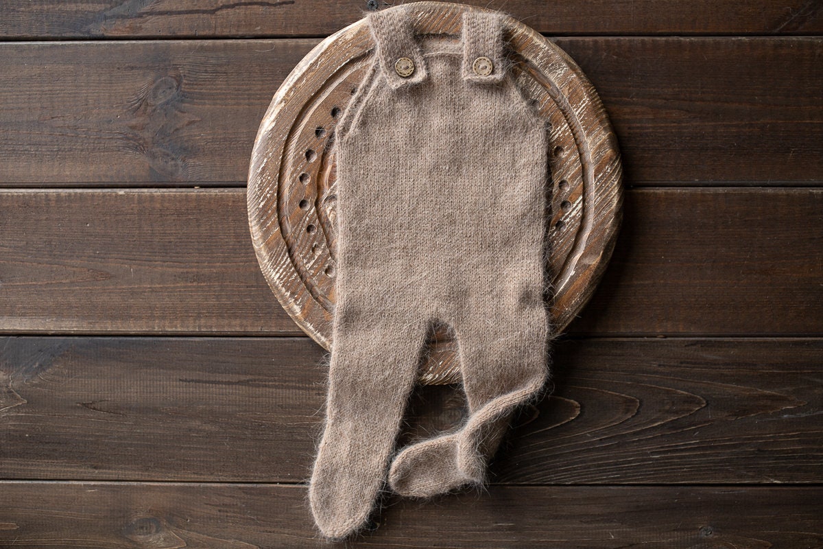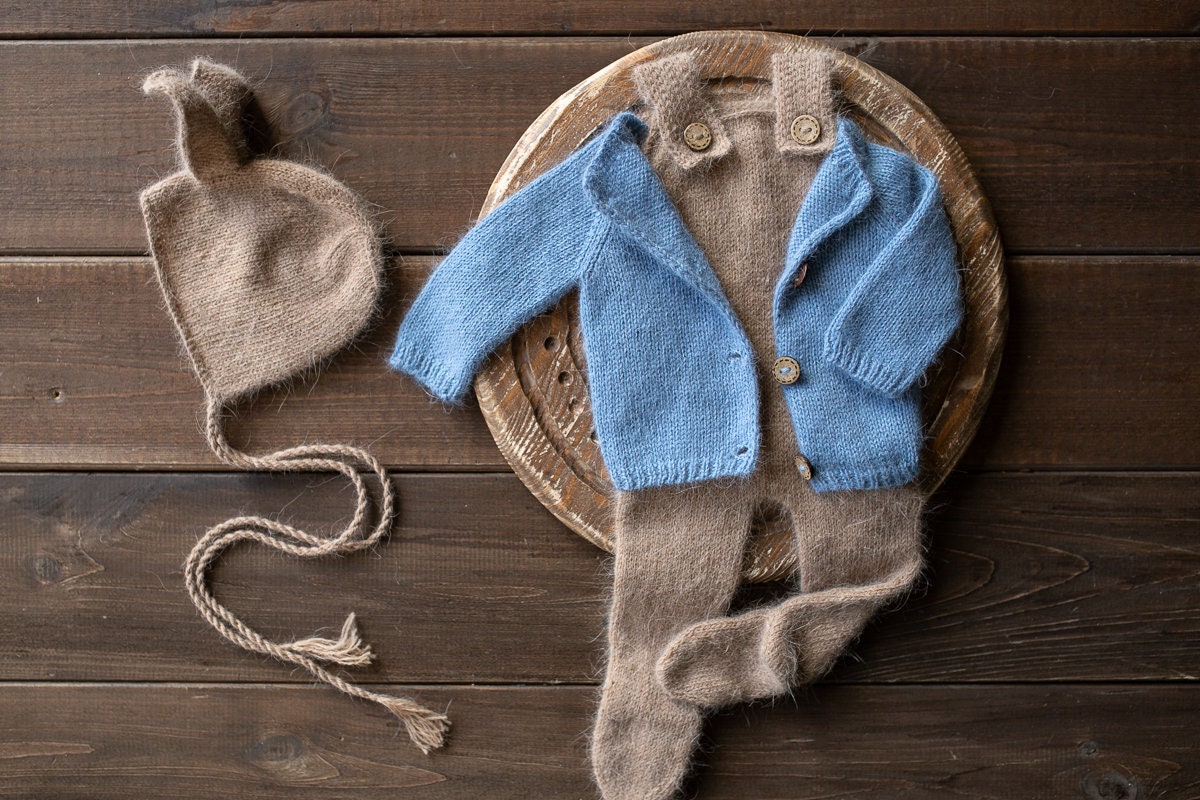 👶 Our knitted set includes stylish suspenders pants, a cozy sweater, and a charming hat, crafted with love for those special moments with your newborn.